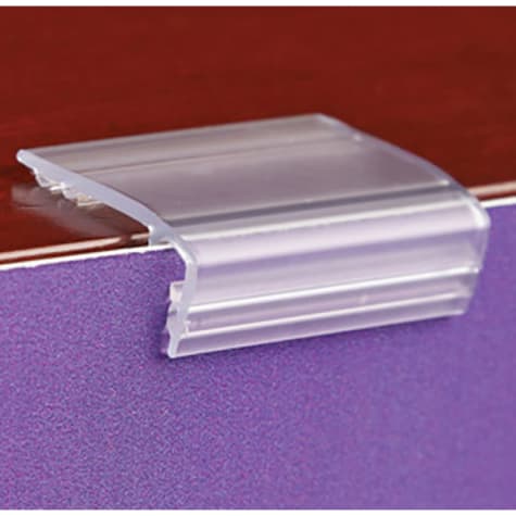 This sign holder features patented technology to grip shelf and hold signs in the flush position.