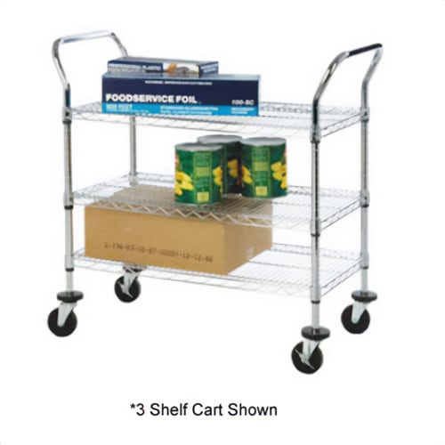 This Darling utility cart includes three shelves with a chromate finish, four 4" casters (2 swivel & 2 swivel with brakes) with bumpers. Great for transporting items from place to place, or just for storage.
