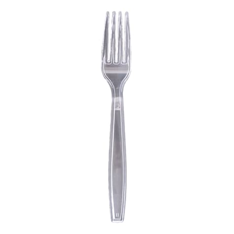 This 7" disposable fork is crafted from heavy weight polystyrene and is designed to withstand various food textures without snapping or bending.