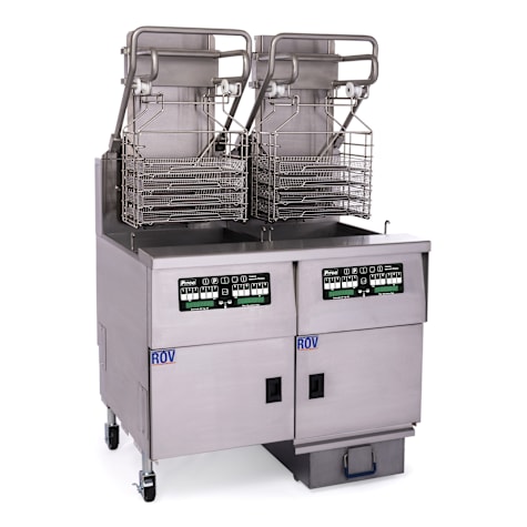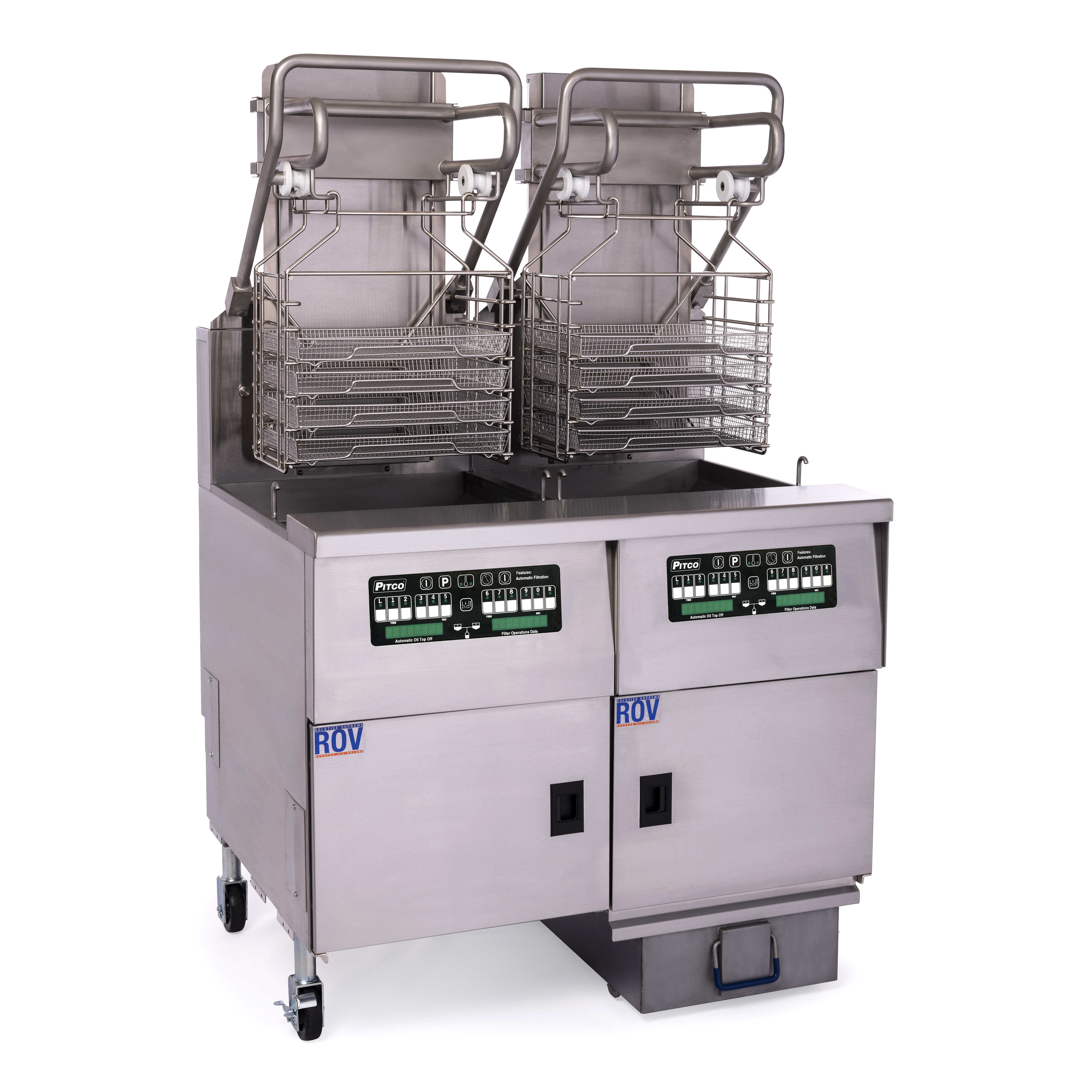 This Pitco Solstice Gas Rack Fryer is a high-output, reduced oil volume fryer designed for commercial kitchens requiring efficiency and consistency. Featuring two 76-pound fry pots, this natural gas-powered unit delivers 250,000 BTU for rapid cooking. Its Intellifry computer controls allow for precise frying, while the automatic top-off system maintains optimal oil levels, reducing manual handling. The fryer includes a built-in filtration system, ensuring oil quality and extending usability. With a lift-assist system and five-slot rack holders, it accommodates large-scale frying operations, making it ideal for fast-paced restaurants, stadiums, and casinos. Constructed from durable stainless steel, this unit combines performance, automation, and reliability for demanding food service environments.