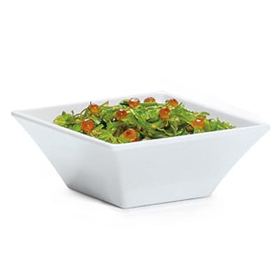 This white square bowl by G.E.T. has a modern design and is sure to please any guest. Perfect for serving your favorite salad or stews. It holds 1.6 quart and is 8" on each side. It is made of break‐resistant melamine and is dishwasher safe. NSF Listed.