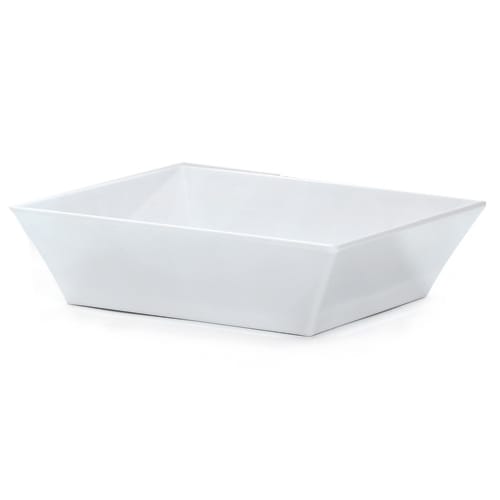 This white square bowl by G.E.T. is perfect for serving large helpings of salads or side dishes. It has a modern look and is sure to please any guest or customer. This bowl holds 5.7 quarts and is 12" on each side. It is 4.25" deep and is made of melamine, which is break‐resistant. This bowl is dishwasher safe and NSF listed.
