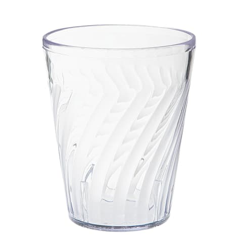 This clear 12 ounce Tahiti™ tumbler is made of durable SAN plastic. It's NSF listed, dishwasher safe, and patented.