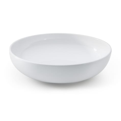 The bright white finish on this wide rim Diamond White™ 1.9 quart bowl provides a beautiful frame for salads or pastas.