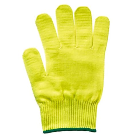 This Mercer Culinary® Millennia® Cut-Resistant Glove offers extra protection while using knives, mandolines, and more. It offers ANSI level A4 cut protection and features ultra-high-molecular-weight-polyethylene construction. This glove is a medium size and is a yellow color.