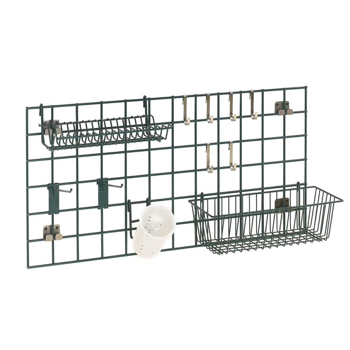 This Metro Complete accessory package fits minimum 18" x 36" Smartwall grid space (grid not included). This unit is easy to keep clean and corrosion resistant. Antimicrobial properties are built in to inhibit the growth of bacteria that may affect this product. The antimicrobial properties do not protect users or others against bacteria, viruses, germs, or other disease organisms. Always clean and wash this product thoroughly before and after each use.