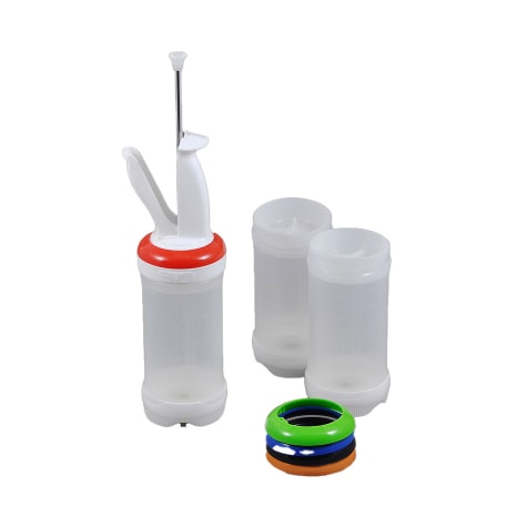 Achieve consistency in every meal with this Portion Pal™ kit from FIFO. This kit includes three, 16 ounce bottles and five assorted Portion Pal™ portion control rings.