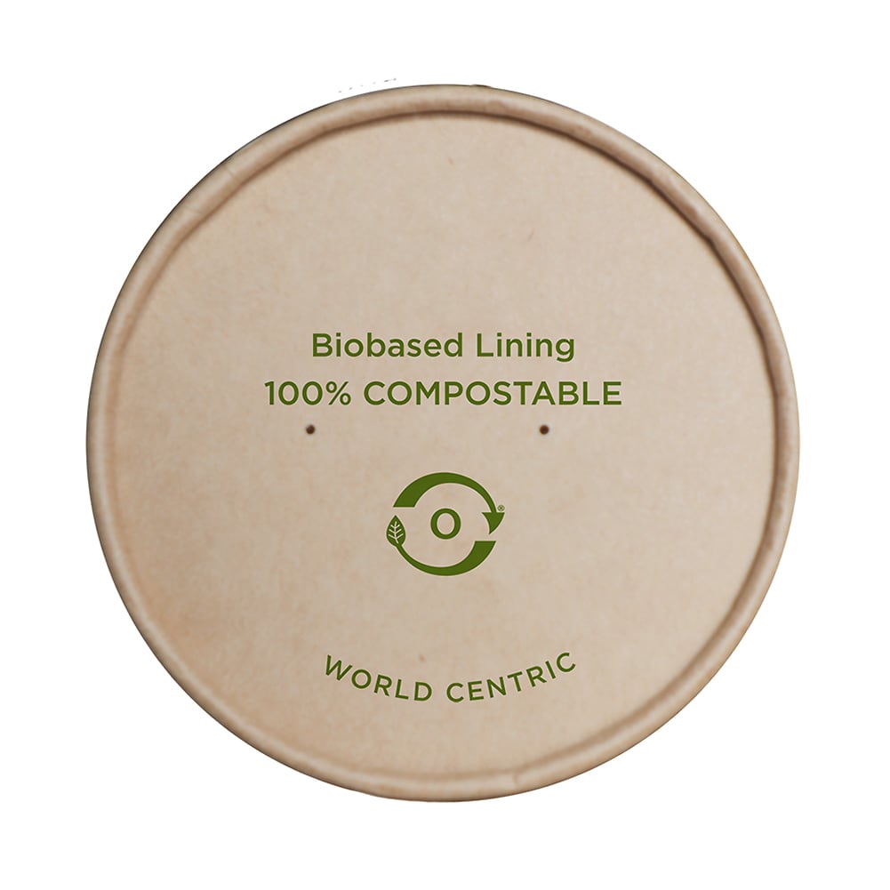 These World Centric® kraft paper lids are for use with their 12 - 32 ounce paper bowls and are made from unbleached sustainably sourced kraft paper with a bio-lining made from plants. These lids are suitable for hot or cold foods.