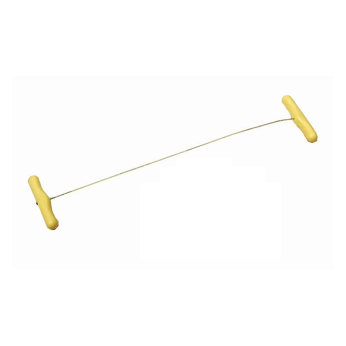 The Matfer Bourgeat cheese and butter cutter wire is essential in a busy kitchen to quickly cut butter or cheese slices. The cutter has plastic handles and the wire is 11-7/8 in length.