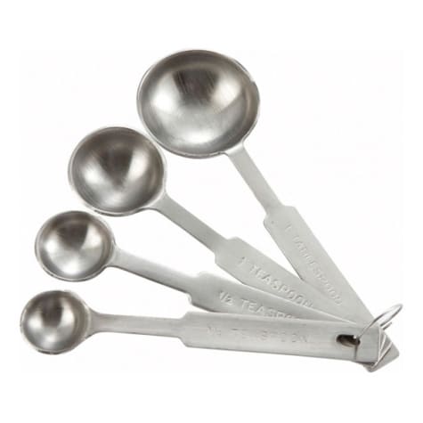 This 4-piece measuring spoon set from Winco® features durable, stainless steel construction and includes 1/4 Tsp, 1/2 Tsp, 1 Tsp and 1 Tbsp.