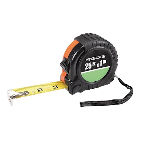 The tape measure features easy-to-read markings and a handy thumb lock. It has a thick spring steel blade for extra-long standout. Carpenter's marks every 16" help you locate studs.
