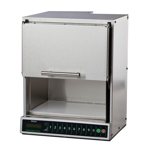 This Menumaster® Commercial OnCue Microwave Oven is great for quick service or casual dining restaurants. It has a unique door that opens by sliding up, which keeps kitchen traffic uninterrupted.