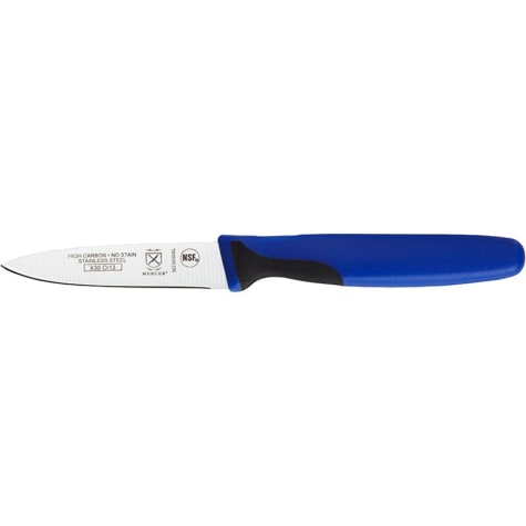 This Mercer Culinary® Millennia® Paring Knife is great for slicing produce or cutting decorative garnishes. Its blue color-coordinated handle is ergonomically designed for comfort and is great for HACCP systems.