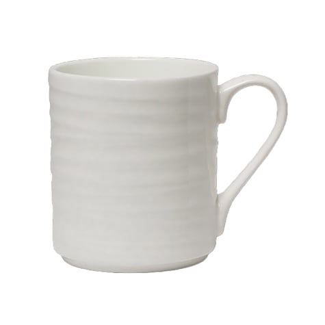This 12 ounce stack mug is part of the Ruche Collection from Folio. A full rimmed embossment with the feel of flowing layers of satin, Ruche brings romance and elegance to any tabletop presentation. The luminosity of the bone china combined with the functionality of the coupe rims produces a striking well-designed backdrop for food presentation.