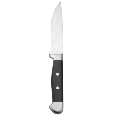 This steak knife from 1880 Hospitality has a polyoxymethylene black handle and a high quality stainless steel blade that is forged welded onto a casted handle for long lasting durability. This steak knife is the perfect choice for your finest cuts.