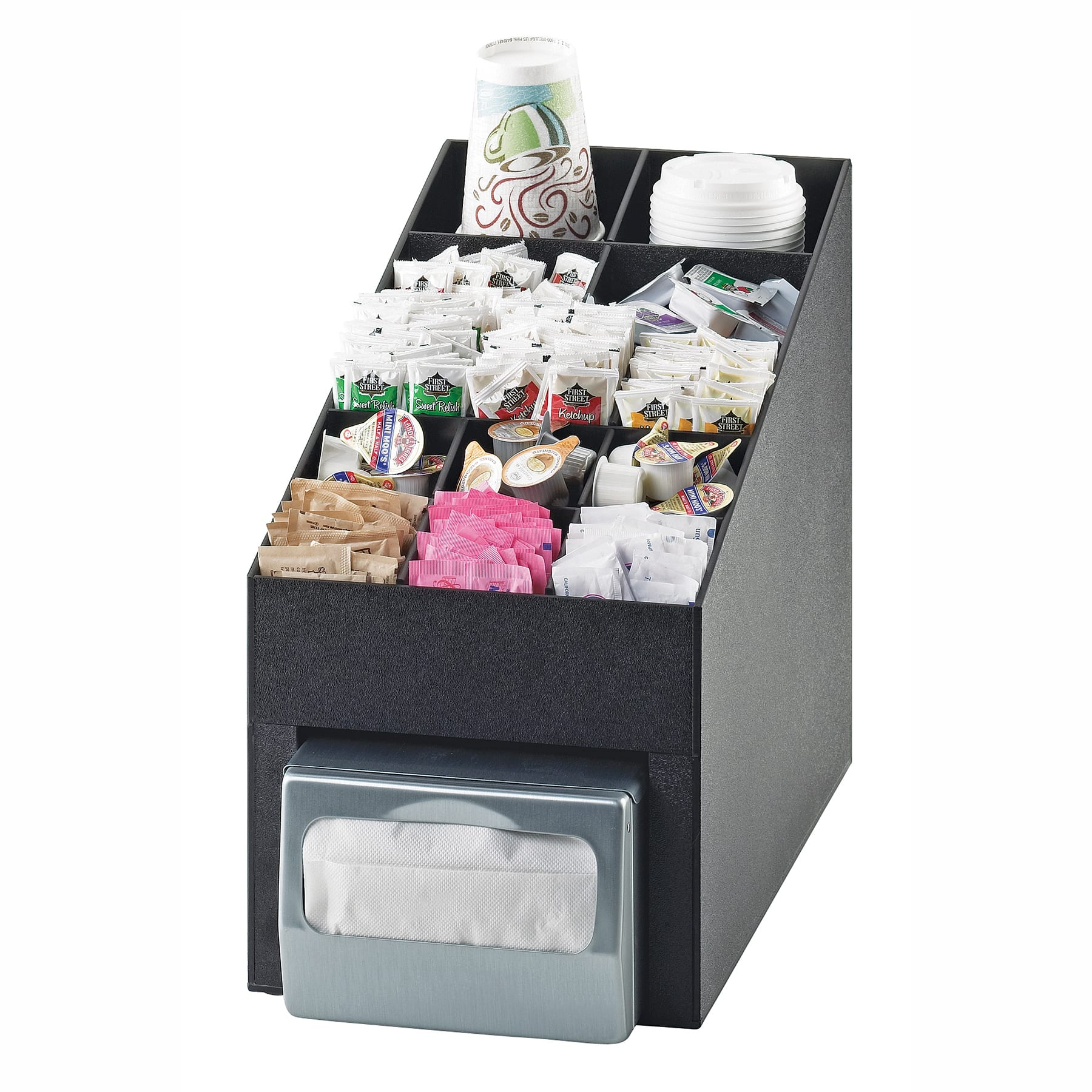 This 6 compartment condiment organizer from Cal‐Mil has room to get all of your condiments looking well prepared. With the option of adding a standard napkin dispenser below the organizer, this product is built with efficiency in mind.