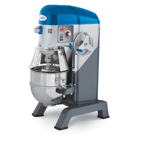 This Vollrath® 60 quart mixer has several safety features including auto shut‐off after 30 minutes and a safety cut switch that will temporarily interrupt power if gears are changed.