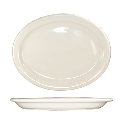 This oval platter from International Tableware is part of the Valencia™ Collection and features a classic narrow rim rolled edge body in a traditional American White color. Perfect for restaurants and diners!