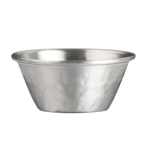 Serve sauces, salsas or dips in this 1.75 ounce ramekin from Steelite. It is part of the Creations Collection and features stainless steel construction with a hammered finish. This ramekin will be sure to add a stylish look to any table!