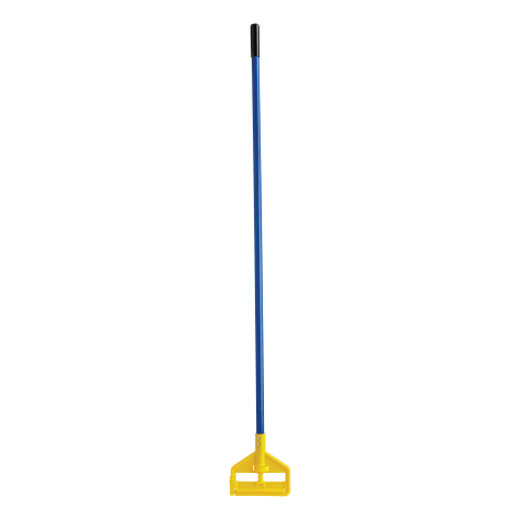 This 60" wet mop handle features a lightweight fiberglass body and the Invader side gate head that makes changing mop heads fast and easy. Just turn the thumb wheel on the yellow plastic head to release your old mop head, then tighten the wheel to securely clamp a new one on. This handle is designed for use with mop heads with 1" headbands only.