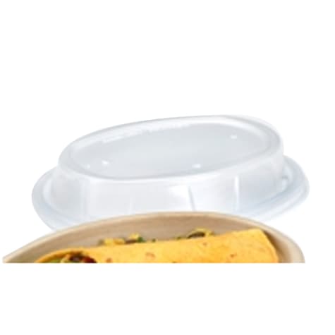 This clear microwavable lid fits the TerraPac® medium oval platter & burrito bowl.