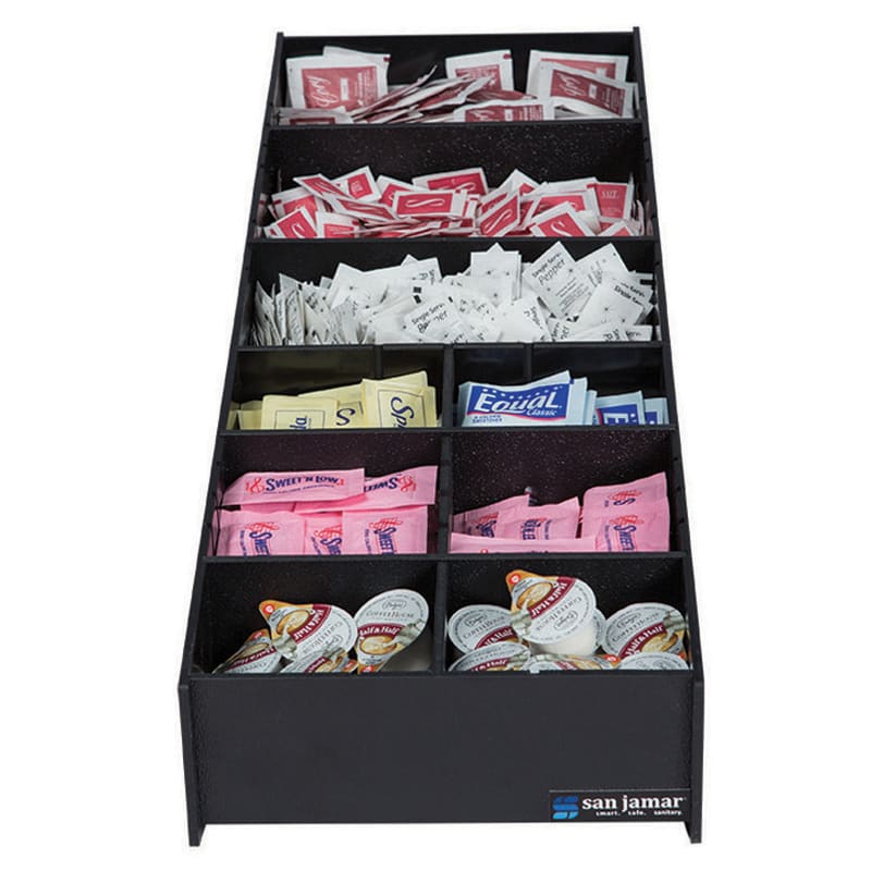 This San Jamar® Organizer keeps straws, stirrers, packets, and creamers organized and easily within reach.