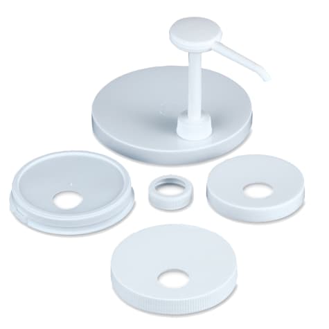 This San Jamar® Economy Pump Kit includes one pump, three screw caps, and two snap caps. These can fit on a variety of condiment containers.