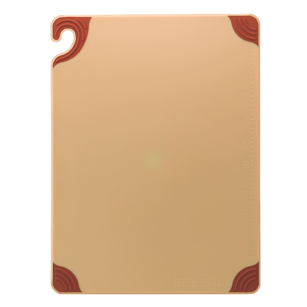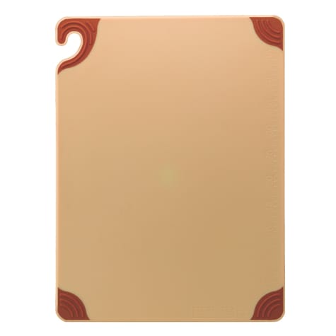 This San Jamar® Saf-T-Grip® cutting board is made out of a durable co-polymer material which can withstand high temperatures and will not warp. Its easily identifiable brown color makes it ideal for preventing cross-contamination. Molded-through grip corners provide stability during use. This item is dishwasher safe and NSF listed.