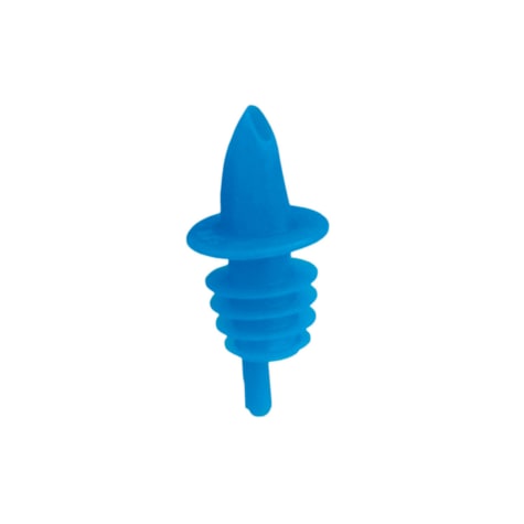 This Spill-Stop plastic pourer has a durable, flexible design that ensures a long product life. It comes in a blue color and is made in the USA.