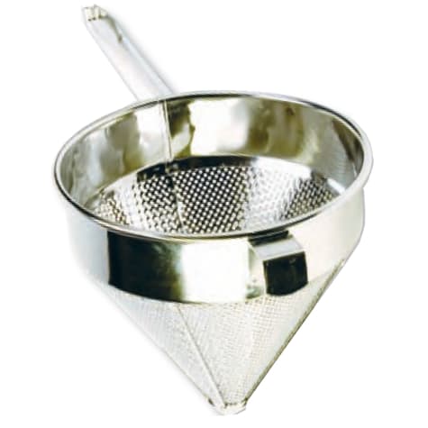 This strainer from Darling Foodservice is made from durable stainless steel with a reinforced rim.