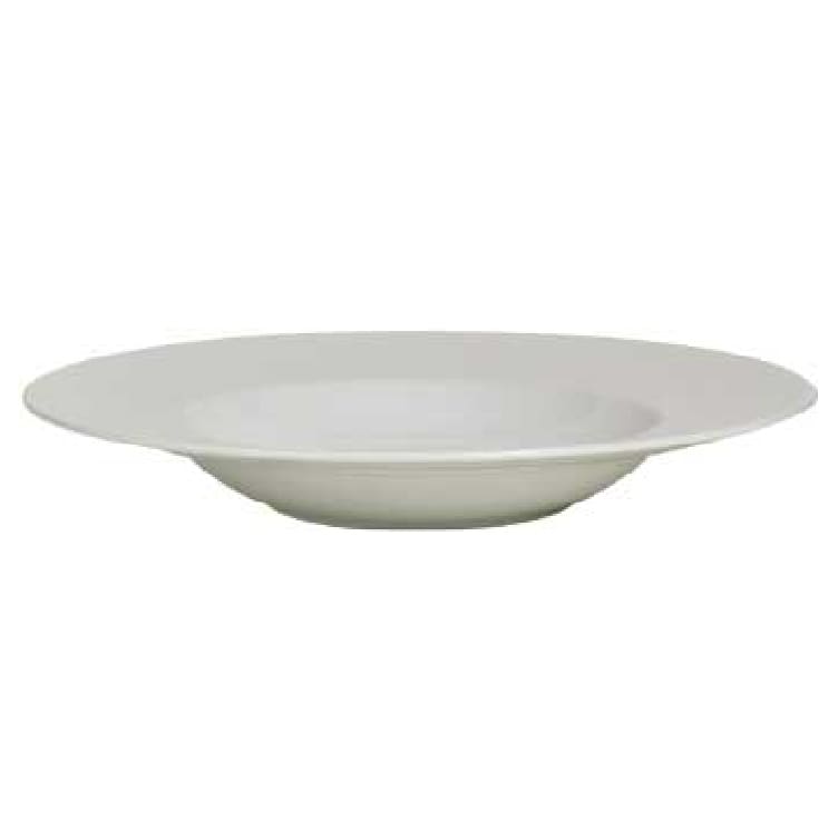 Serve delicious soup or pasta with this 9" bowl from Rene Ozorio. It features a sophisticated embossment of radiant lines on the rim which places emphasis on the cuisine being served. This bowl is part of the Sonata Collection and is made from durable porcelain material. Perfect for restaurants or banquet facilities!