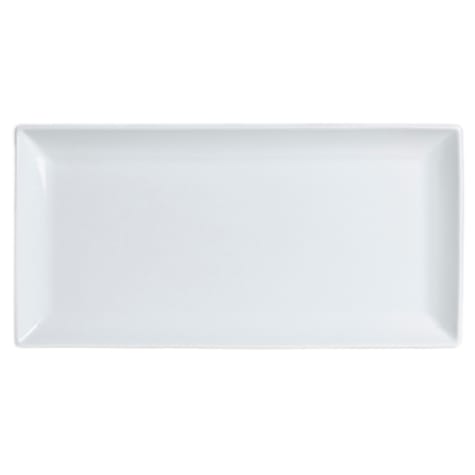 Serve appetizers or main entrees with this rectangular plate from Steelite. It is part of the Varick Cafe Porcelain Collection and features bright white porcelain with a superior glaze.