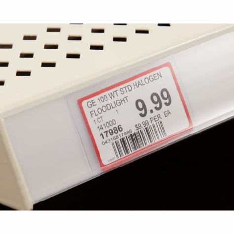 You can scan codes through the clear facing window that protects data tickets, UPC inserts or signs. Changing labels is easy with side or top insertion or removal and the T‐top window helps protect labels from dust or spills. You also get integrated gripper fins along the top edge allow thin signs or advertisements to be held on the outside of the window.