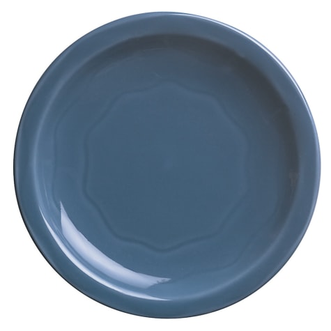 This 9" plate features the signature wavy carved lines of the Cantina® shape and a soft blueberry blue body.