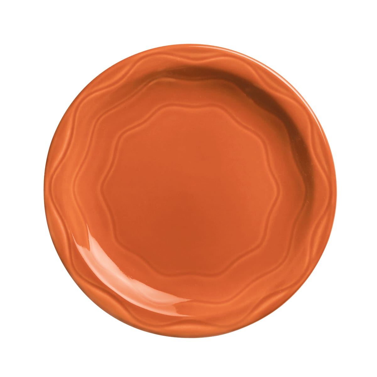 This 9" plate features the signature wavy carved lines of the Cantina® shape and a fiery cayenne orange body.