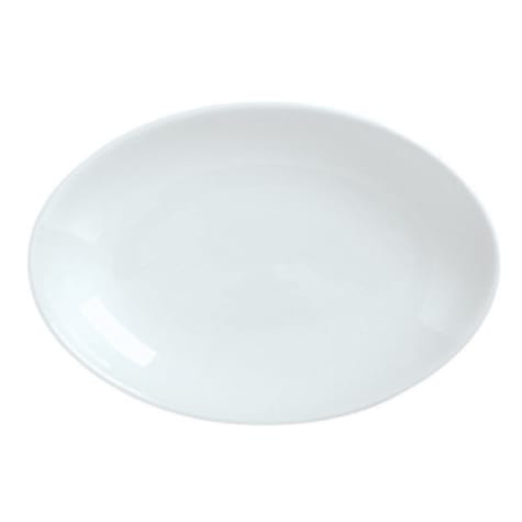 Serve delicious entrees or appetizers on this 10.13" x 7" coupe platter from Syracuse China. It is part of the Reflections™ Collection and features a simple design that will blend with any table setting. Perfect for restaurants or banquet facilities.