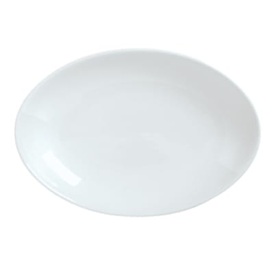 This Syracuse® Reflections™ Coupe Platter is an attractive way to serve a variety of foods in any restaurant. It comes in a 14.13" x 10.38" size, and is made from porcelain. This platter comes with a lifetime no-chip warranty.