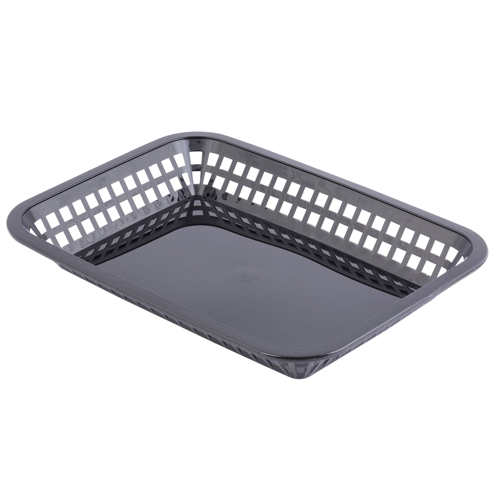 This TableCraft 1077BK rectangular Grande platter basket is perfect for high‐traffic restaurants and other food businesses. This rectangular Grande basket surely turns plain‐looking dishes into delectable ones. This sturdy basket is designed to withstand constant use in heavy‐volume food establishments.