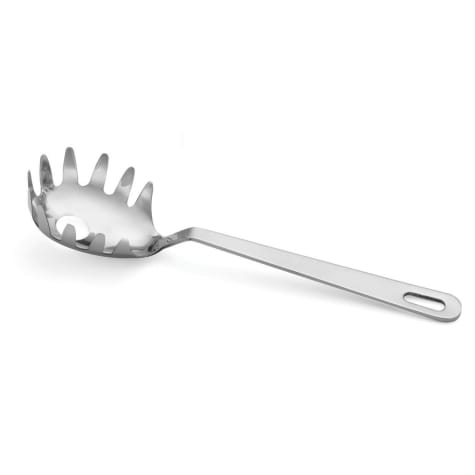 This TableCraft 2068 pasta grabber has a center hole for draining excess liquids while serving. It's constructed of stainless steel with a mirror polished finish.