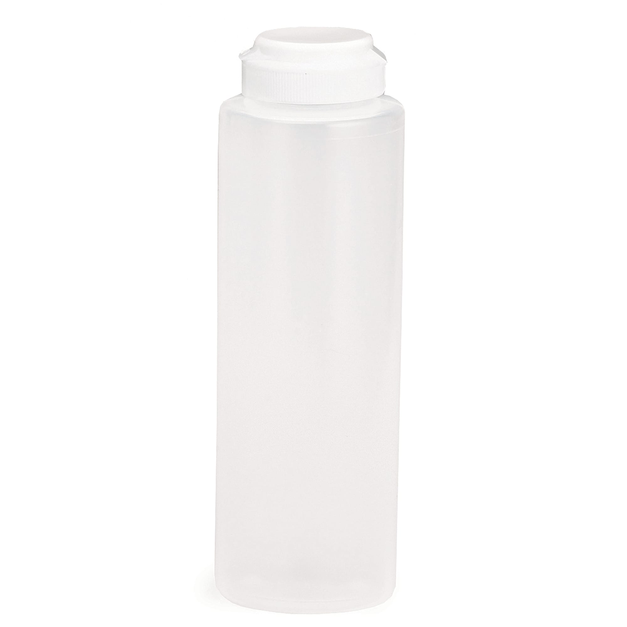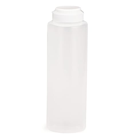 Ideal bottle to use for back of the house food prep or dining room service. This TableCraft clear squeeze bottle has a hinged top and features soft PerfectFlex that makes it easy for customers to squeeze.