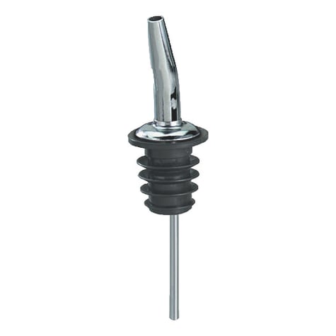 This TableCraft pourer is constructed of chrome plated stainless steel. The tapered tip with narrow opening increases pouring speed. The breathe tube and plastic seal provide trouble free use.