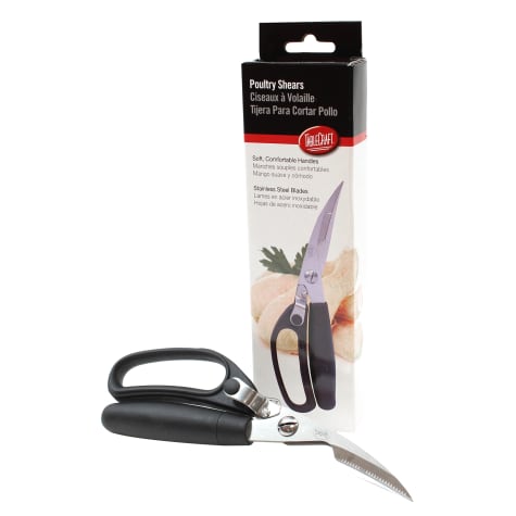 These soft grip poultry shears have ergonomically‐designed, soft grip handles that make sure work of intricate tasks. They have angled, stainless steel blades and a non‐slip grip that provides comfort and safety.