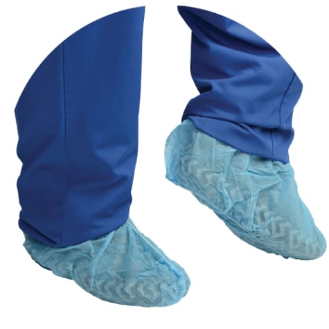 These blue shoe covers from Tradex are made from breathable spunbound polypropylene and helps keep carpet, tile and wood floors free from dirt, mud and scuff marks. The elastic top fits snug on the shoe and the non-skid patterned sole provides traction to prevent slipping.