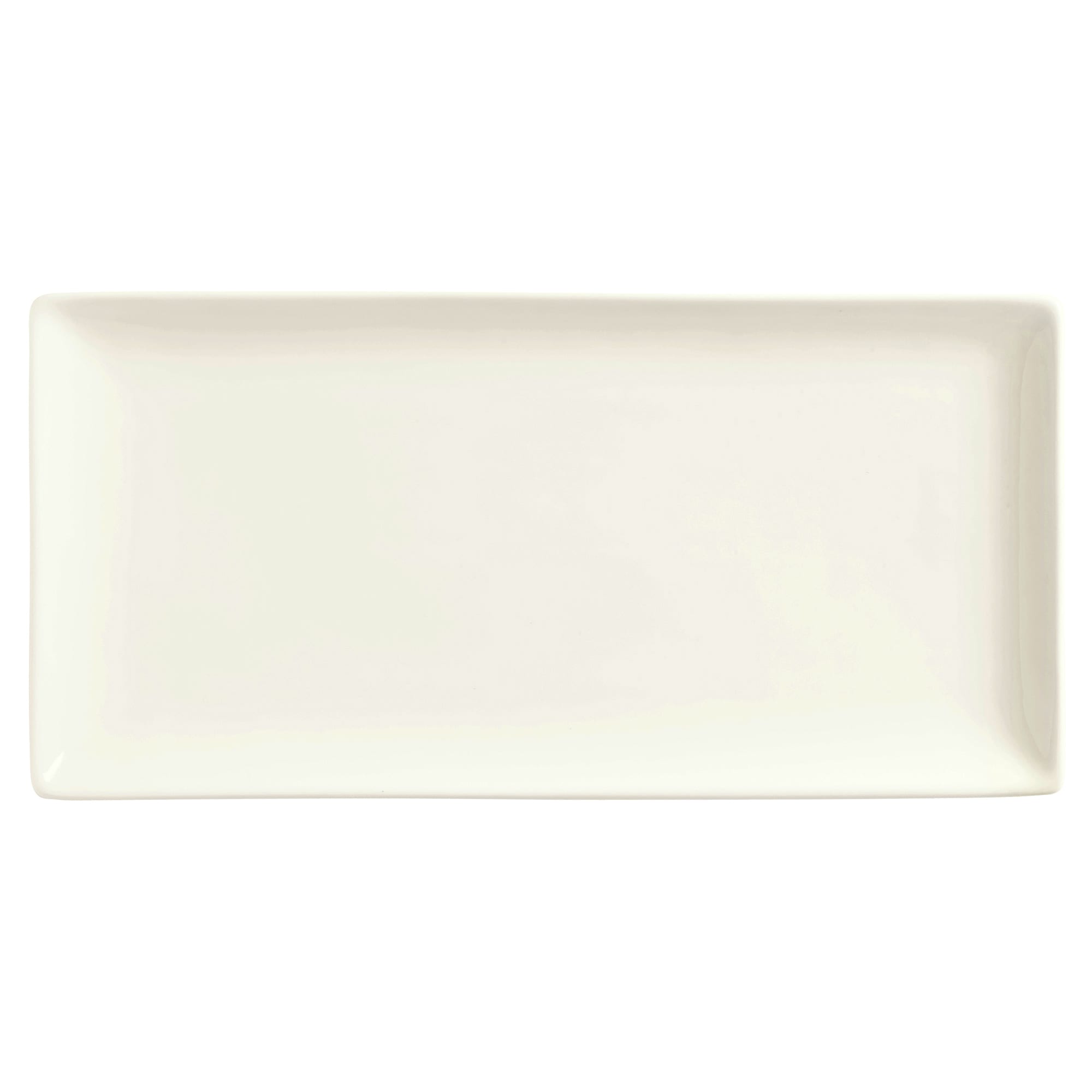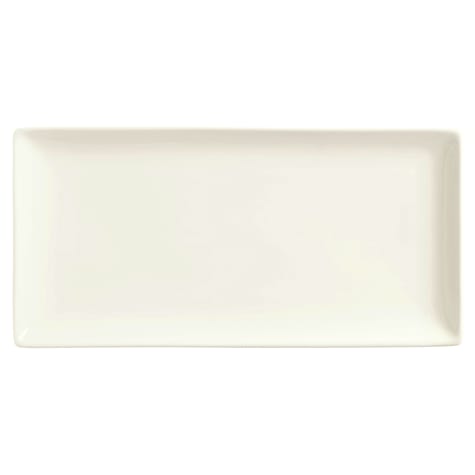 This World® Tableware Slate coupe tray can be used to serve appetizers, desserts, and specialty meals. It is a 16‐1/4" x 5‐1/2" size and comes in an ultra bright white color.