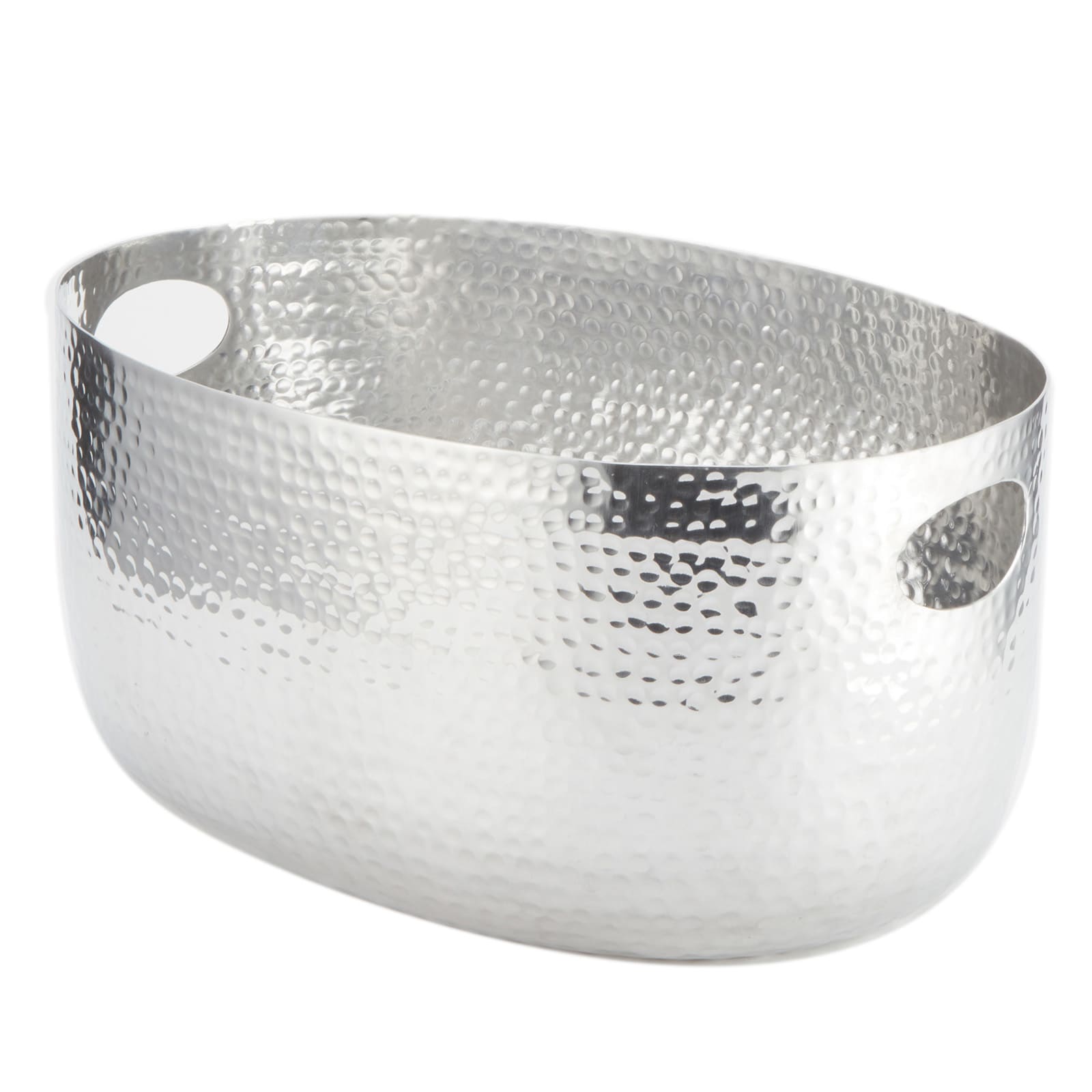 This 10 quart aluminum beverage tub from American Metalcraft is perfect for any gathering from brunch buffets to a private table service for two. This 15" x 10.75" oval tub is 7.25" high and features a beautiful hammered finish.
