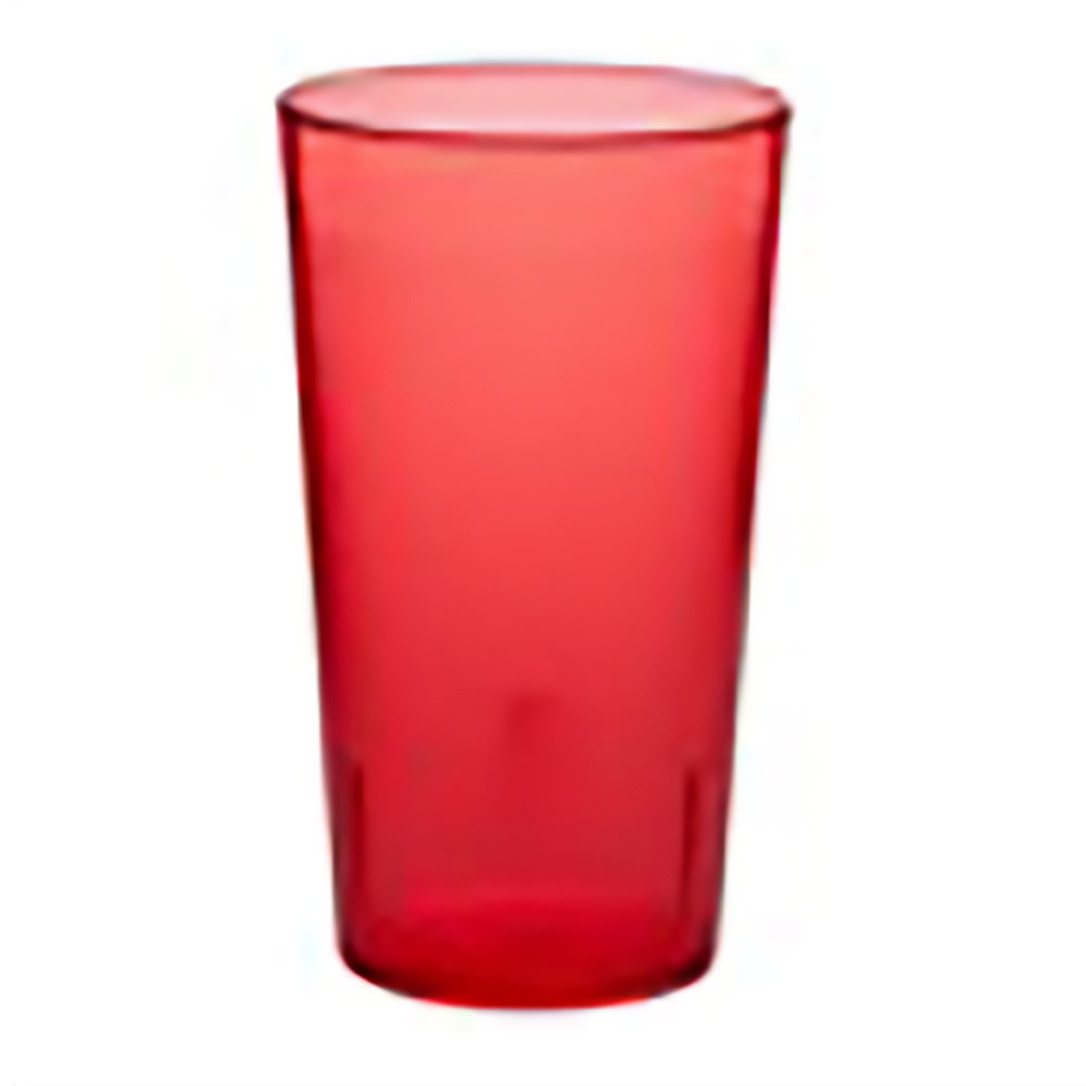 This 12-ounce red tumbler from Darling Foodservice is crafted from durable SAN (Styrene Acrylonitrile) plastic, ensuring it can withstand daily use. Its pebbled texture provides a secure grip and helps to conceal scratches, making it ideal for busy foodservice environments. The tumbler is NSF certified, meeting high standards for public health and safety, and is perfect for serving beverages in restaurants, cafeterias, and other dining establishments.