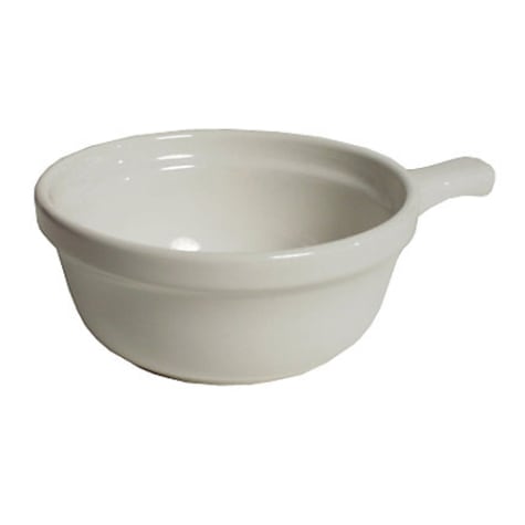 This french casserole dish from Tuxton® is a great way to serve entrees or even soups. It can hold up to 12-1/2 ounces and has a handle for easy carrying. It is white in color and will blend with any dining decor. This french casserole dish has a Lifetime Edge Chip Limited Warranty and is microwave, dishwasher and oven safe.