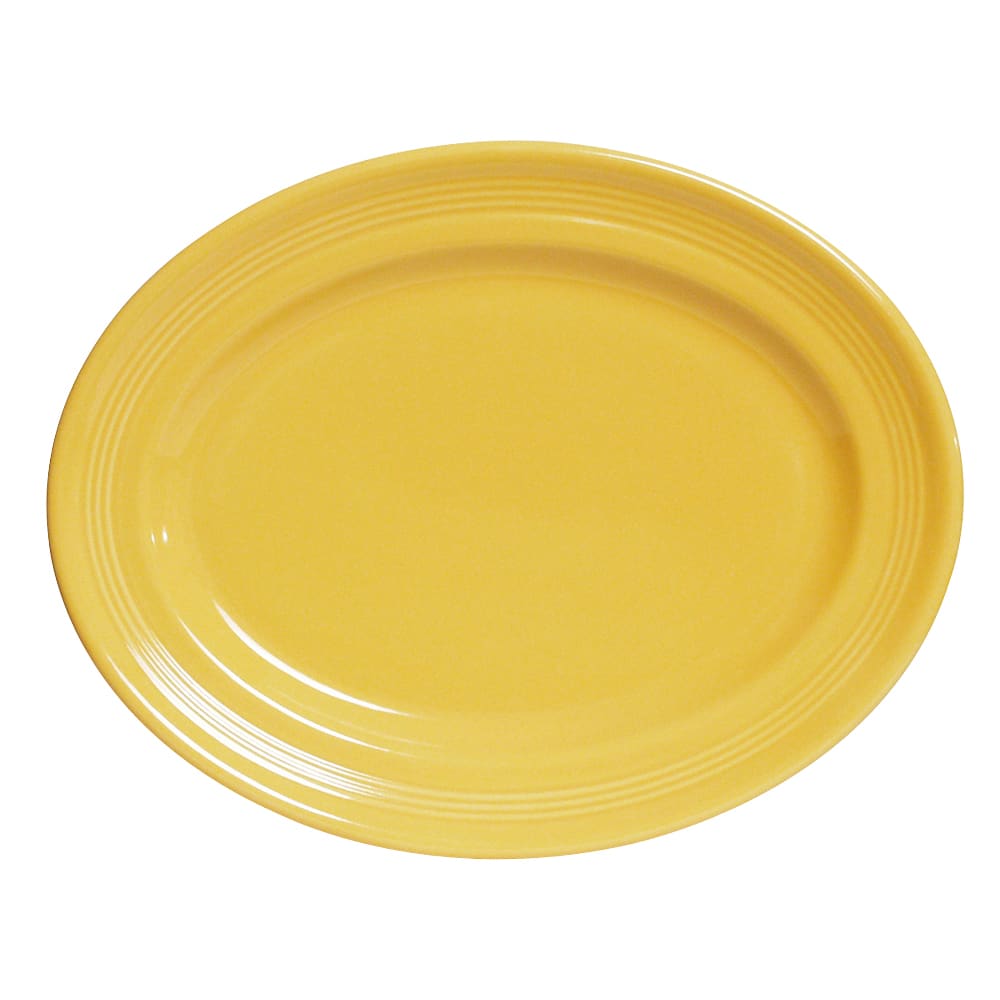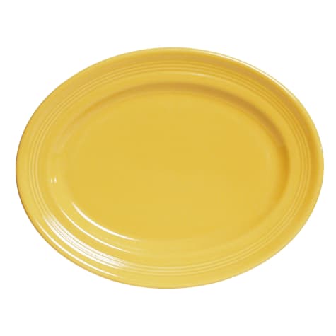 Add some flare to your dining area with this saffron color oval platter. Perfect for use in restaurants or diners. This oval platter from Tuxton® is part of the Concentrix® series and is oven proof, microwave safe and dishwasher safe. It also has a Lifetime Edge Chip Limited Warranty.