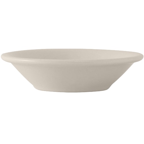 This fruit dish from Tuxton® can hold up to 4-1/2 ounces and would be a perfect addition to any table setting. The eggshell color and simple design will blend with any dining establishment decor. This dish is very durable and has a Lifetime Edge Chip Limited Warranty. It is also dishwasher, microwave and oven safe.