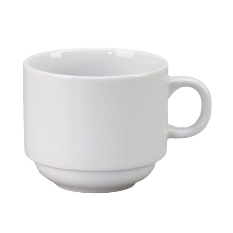 This undecorated cup from the Alpine holds 8 ounces of your favorite coffee or tea. This cup is stackable and made from lead free, vitrified china.